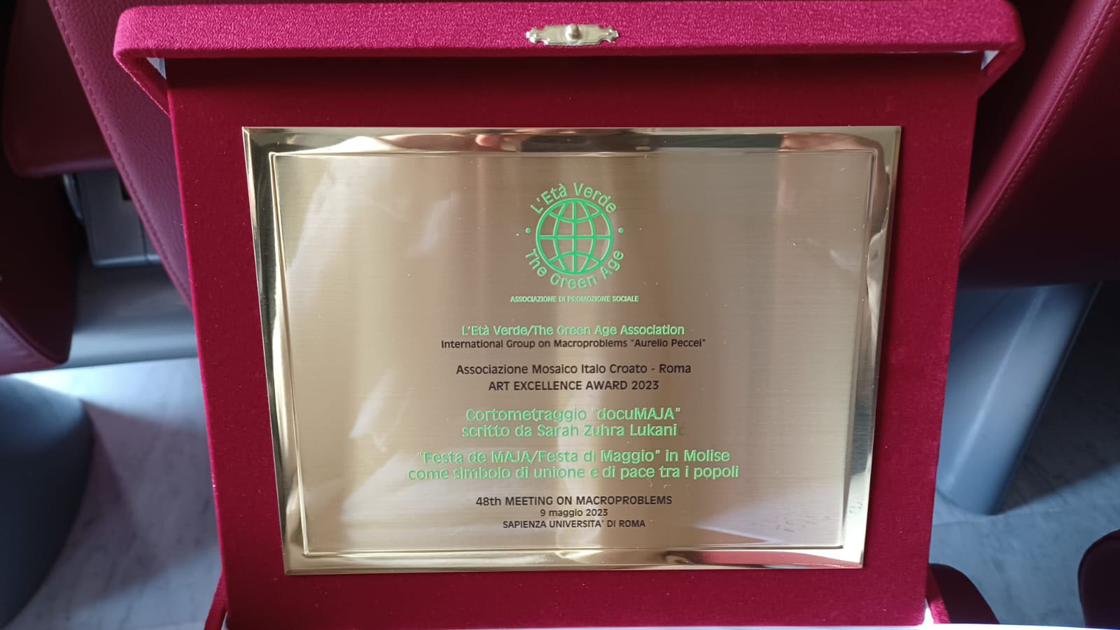 ART EXCELLENCE AWARD 2023 Udruzi Hrvatsko Talijanskom Mozaiku Rim za dokumentarni film “docuMAJA” autorice Sarah Zuhra Lukanić “Festa de MAJA/Festa di Maggio”, kao simbol zajedništva i mira među narodima.